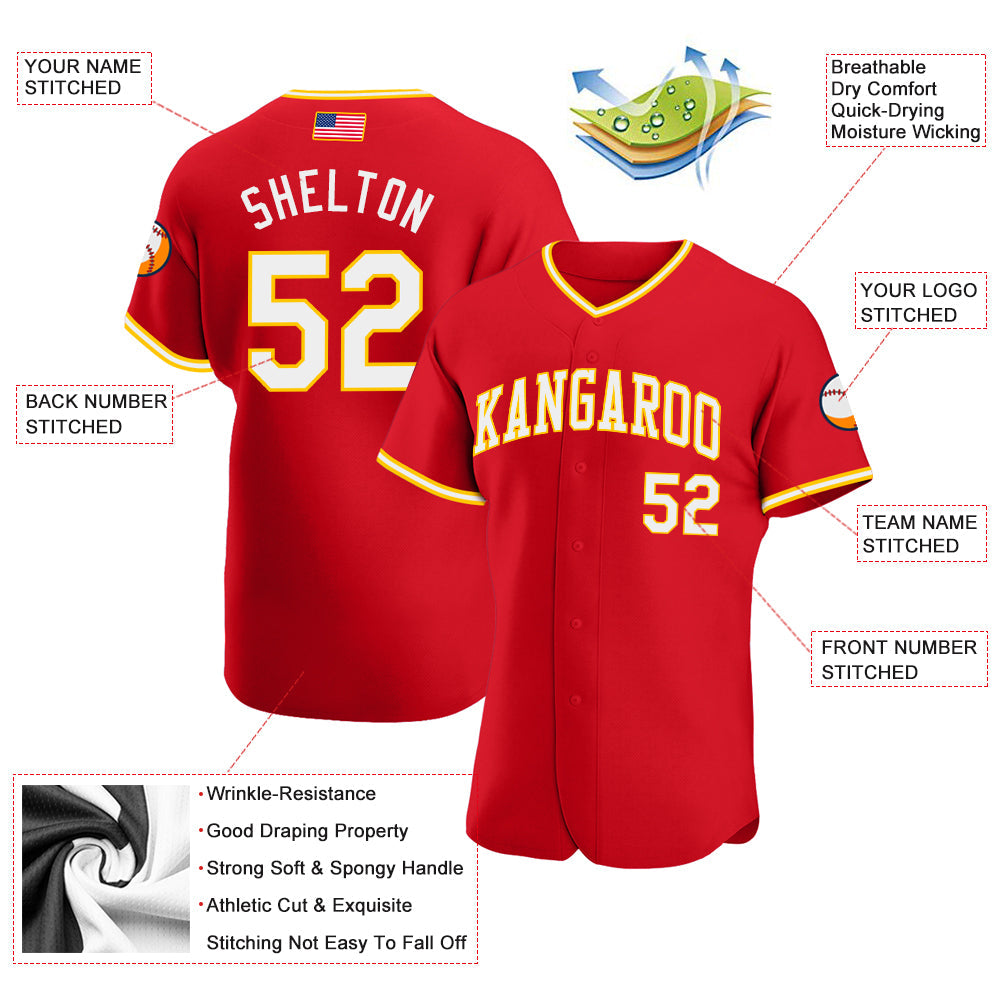 • Custom Red White-Gold Authentic American Flag Fashion Baseball Jersey